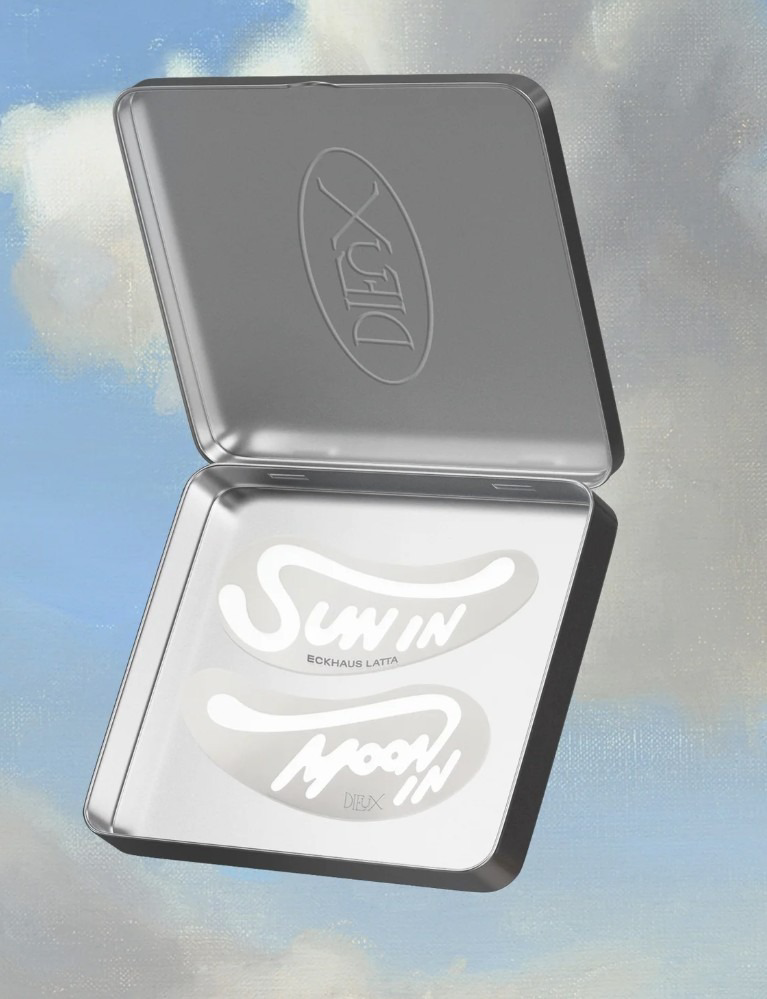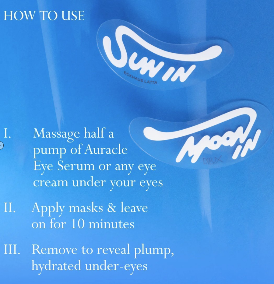 Solar Return Forever Eye Mask- The Eckhaus Latta x Dieux Solar Return Forever Eye Masks are thin, lightweight, reusable eye patches that make a ritual out of your favorite eye formulas, without the waste of single-use masks. Now reimagined with exclusive “Sun In” and “Moon In” designs, and housed in a custom collectible tin, the set nods to astrology for the spiritually curious, skin-loving, and aesthetically inclined. Made of 100% medical-grade silicone for flexibility and grip, the Forever Eye Mask holds gels, serums, and creams close to the skin for maximum product absorption, leaving under-eyes prepped, hydrated, and visibly refreshed. Pair them with Auracle Eye Serum for the ultimate under-eye routine."