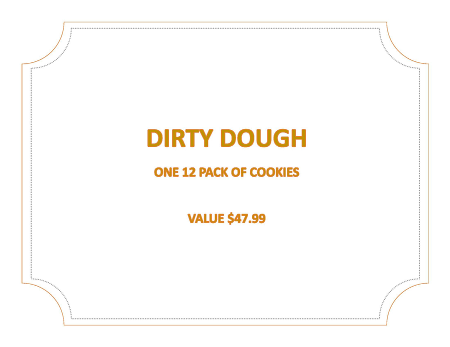 This gift certificate entitles the winner to (12) Dirty Dough cookies