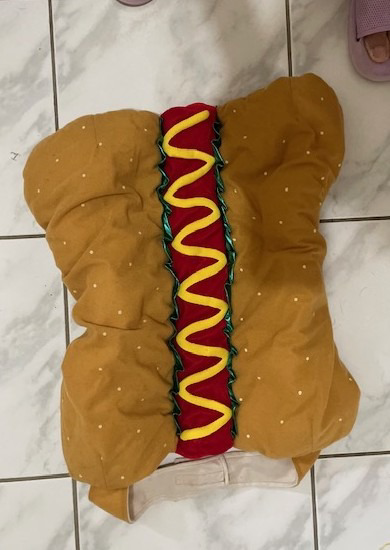 DOG COSTUME - Hot Dog (medium to large dogs)Item Number: 043Category: PET SUPPLIESRetail Value: CAD $22.00 Bidding Starts at: CAD $10.00 0 Bids Buy Now for CAD $10.00 Minimum Bid Increment: CAD $2Time Left 25 Days : 03 Hours : 46 Minutes : 29 SecondsEnds: Mon, Jan 01, 0001 12:00 AM