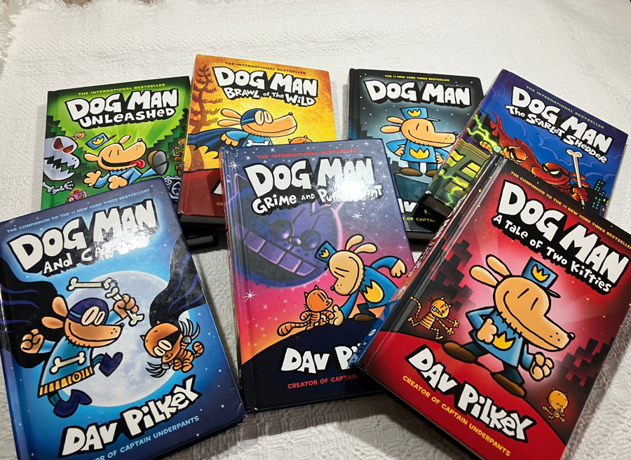Set of seven Dog Man/ Cat Kid Books by Dav Pilkey (Lightly Used/ Brand new condition): Siete Libros de la serie Dog Man/ Cat Kid