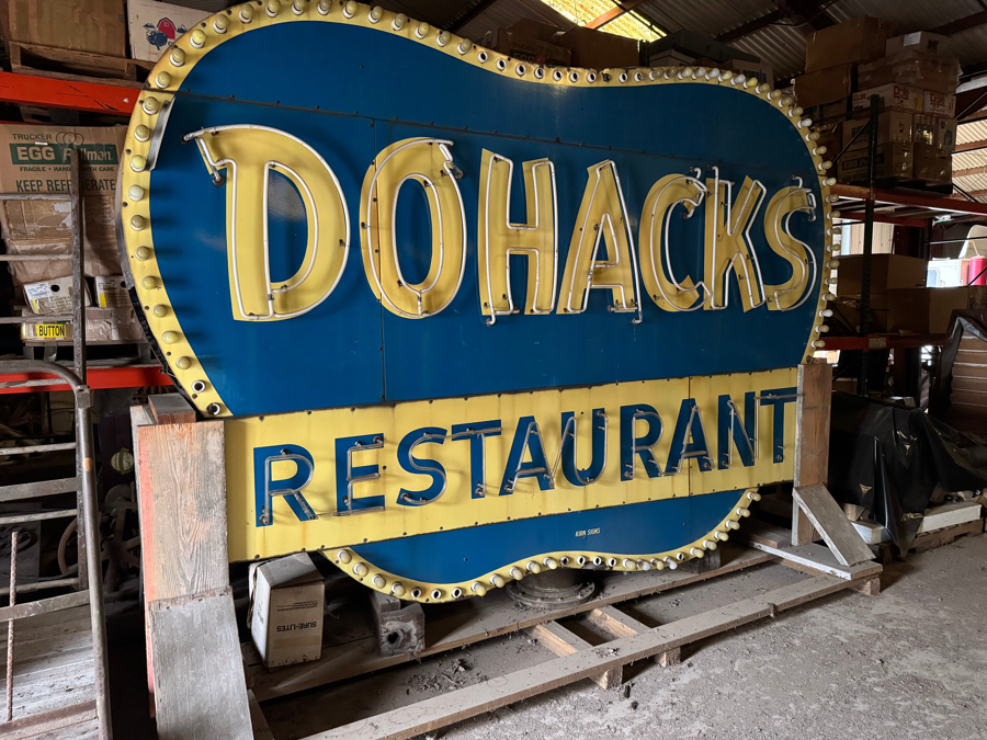 You're not just buying a sign — you're taking home a piece of St. Louis history. Dohack's Restaurant welcomed generations of families from 1930 until its final meal on December 31, 1993, serving more than 100,000 guests in its last year alone. This iconic 8' x 12' x 1' sign stood witness to countless celebrations, dinners, and memories. (Sign size is estimated.) Local pickup in the St. Louis area. Sold as-is, with all its authentic character.