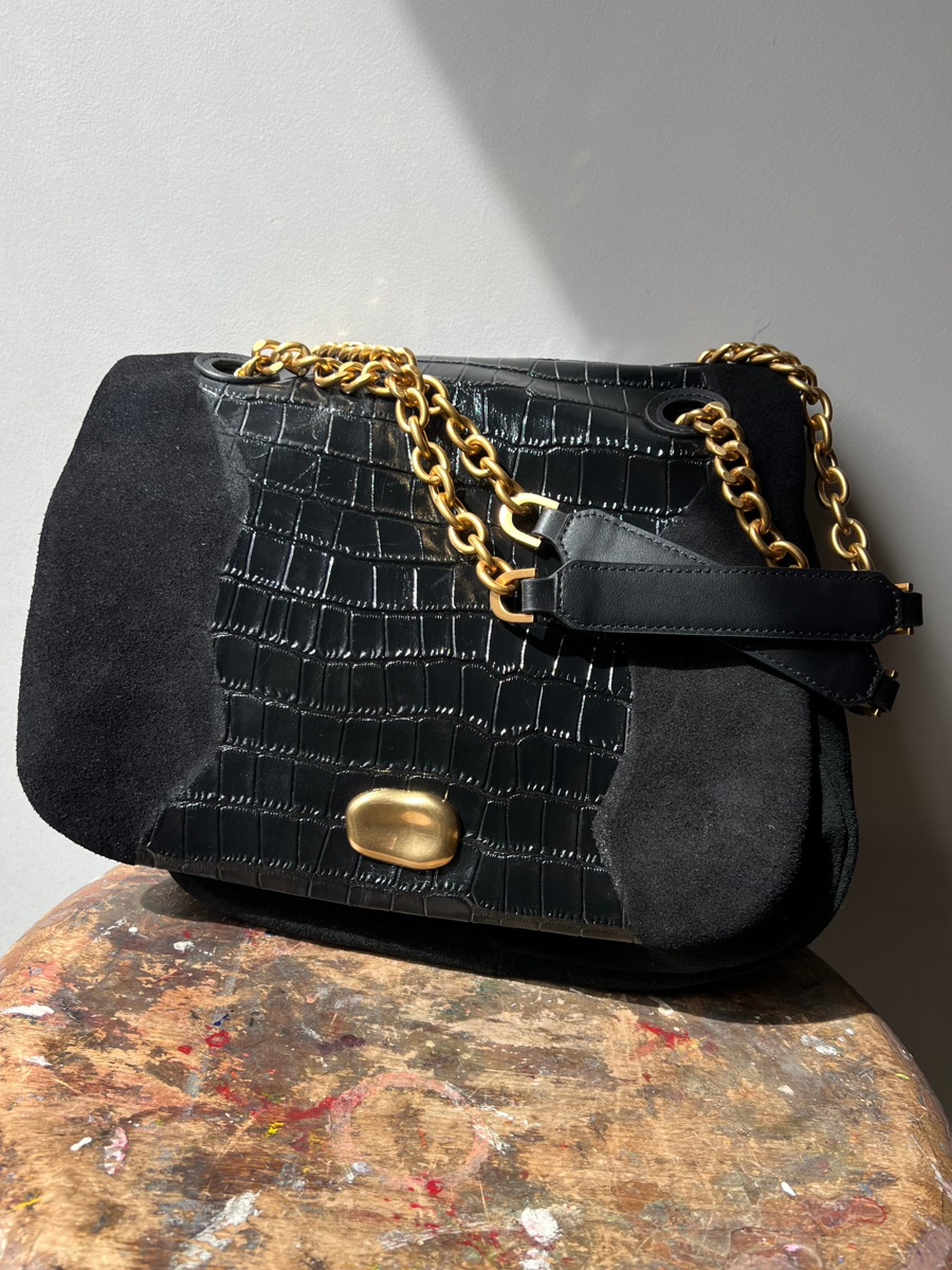 Donna Karan Midnight Croc Embossed Leather and Suede Bag