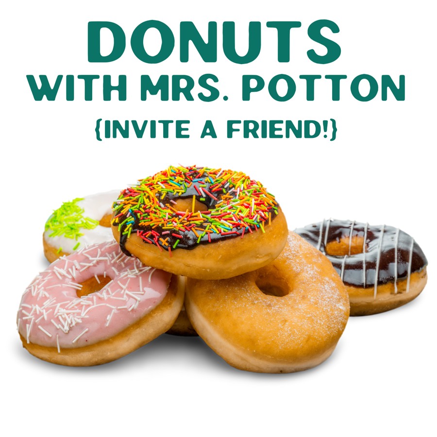The winning bidder will join Mrs. Potton for a yummy donut treat and may also invite a friend! This event will take place on May 2, 2025 in Mrs. Potton's Room (Room 140) at 7:30 a.m.