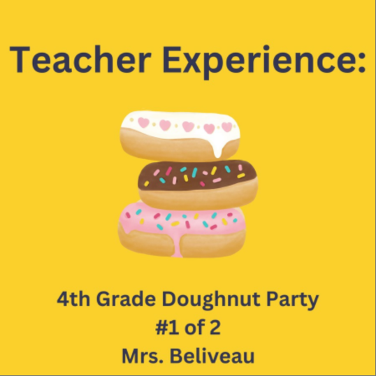 Ms. Beliveau will provide donuts at recess for one winner, together with the other fourth grade teachers and their winners. Two winners from each class. Date TBD.