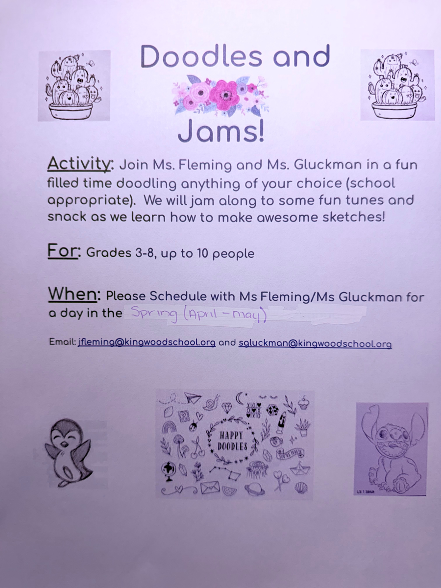 Join us for an exciting auction featuring "Doodles & Jams"! This unique experience combines the joy of drawing with the magic of music, perfect for you and up to 10 friends. Imagine a vibrant atmosphere where creativity flows freely as you doodle your heart out while enjoying live music. Whether you're an aspiring artist or just looking for a fun after school activity, this event promises to be a memorable blend of art and sound. Don't miss your chance to bid on this one-of-a-kind opportunity to unleash your creativity with friends!