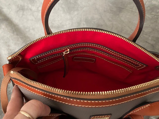 Dooney & Bourke Pebble Grain Domed Satchel - new without tags - this style is no longer available for retail purchase and comes with registration card and dust bag. Overall Dimensions are 5.5" W X 12" L X 8.5"H. Fully lined with zipper top and magnetic snap side closure and detachable crossbody strap. Made from traditional Tuscan tanned cowhide leather that hails from Italy, that is full grain embossed and milled for a uniform pebble with soft-to-the-touch hand feel.