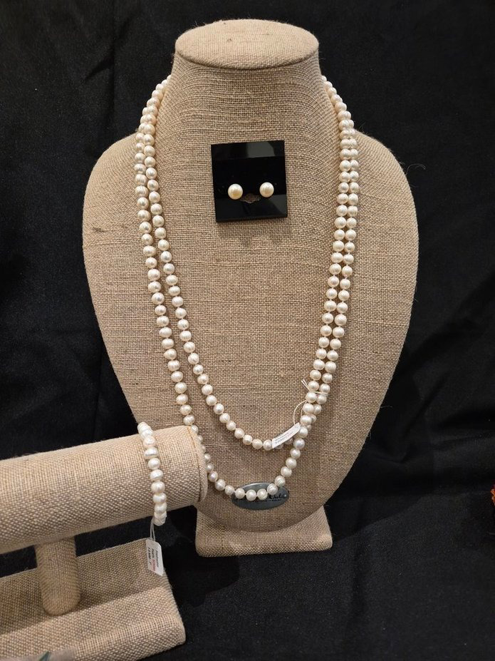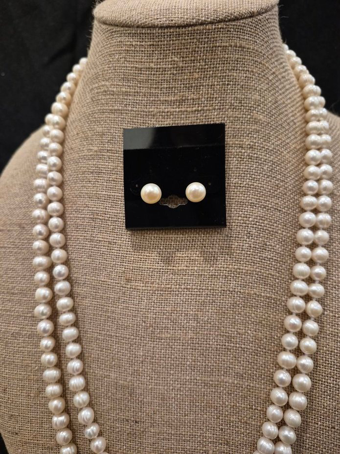 Experience timeless elegance with this stunning freshwater pearl set, featuring a 66" necklace, a matching 7" stretch bracelet, and classic stud earrings. The iridescent white pearls can be worn in countless ways—doubled, tripled, or even tied in a knot—letting you get creative with your style. Freshwater pearls, cultured in mussels within rivers, lakes, and ponds—primarily in China—are prized for their affordability, durability, and unique shapes, including baroque and oval forms. With their gentle pastel luster, they offer a softer, versatile elegance that makes this set a timeless addition to any jewelry collection.