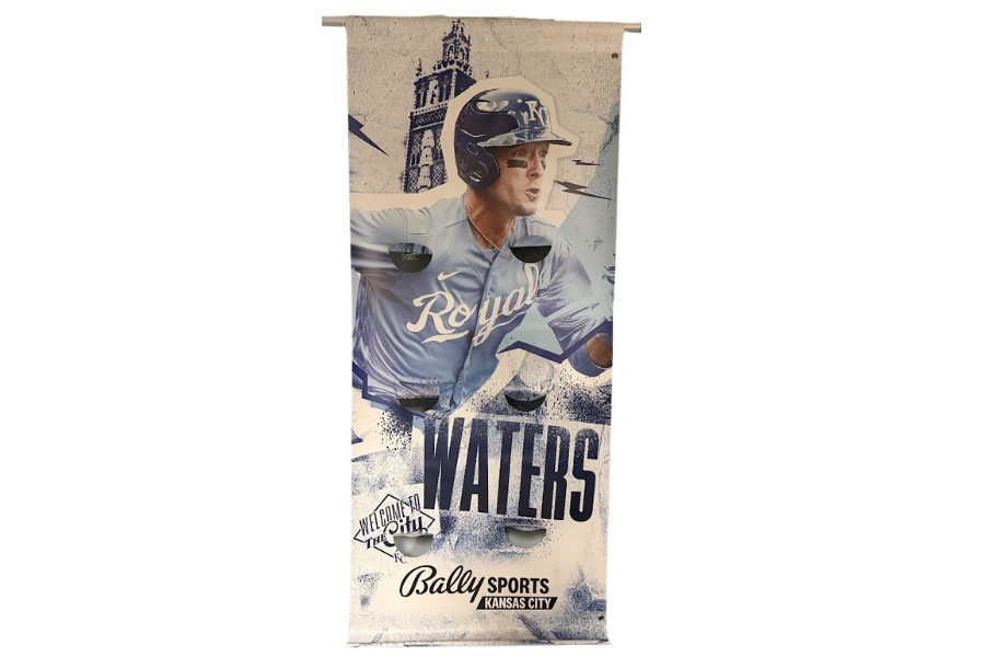 Drew Waters 6-Ft Vinyl Banner, a unique collectible for any Kansas City Royals fan, obtained directly from the Kansas City Royals organization. It has been displayed throughout the Kauffman Stadium parking lot light poles, making it a great piece of memorabilia that captures the spirit of game day. Whether you're looking to enhance your sports collection or decorate your space with a piece of Royals history, this banner is a must-have!