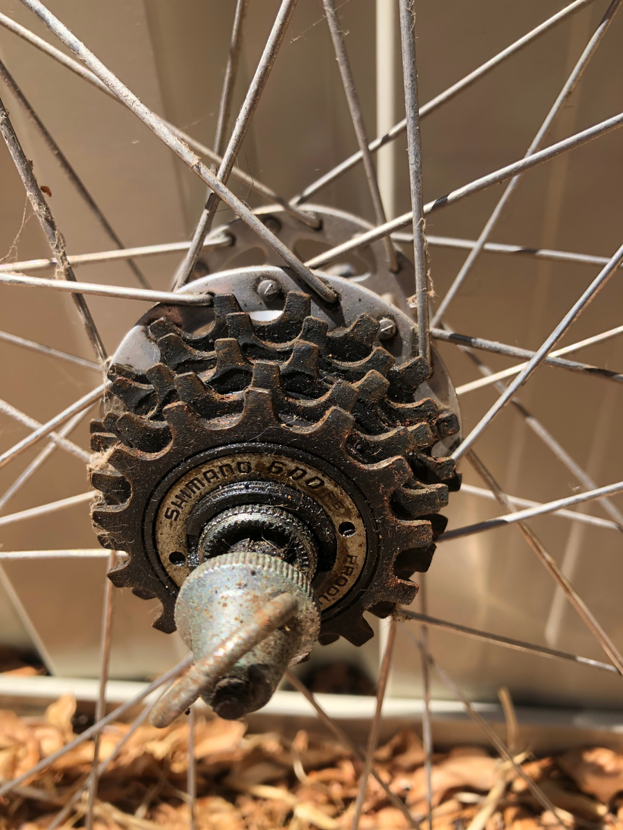 With Shimano 600, 5 cog cluster