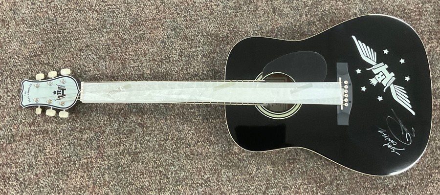 This auction features a stunning Dustin Lynch autographed guitar, perfect for any music lover and fan of the country music star. The guitar is not only a beautiful instrument but also a unique collectible, signed by Dustin Lynch himself. Whether you are a musician looking to add to your collection or a fan wanting a special piece of memorabilia, this autographed guitar is an incredible opportunity. Don't miss your chance to own a piece of country music history with this Dustin Lynch autographed guitar!