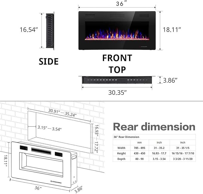 This stunning Electric Fireplace is perfect for enhancing any living space with warmth and ambiance. This versatile unit can be installed as a recessed or wall-mounted option, making it a great fit for various room layouts. With the ability to heat areas up to 400 sq ft, it ensures comfort during those chilly nights.
