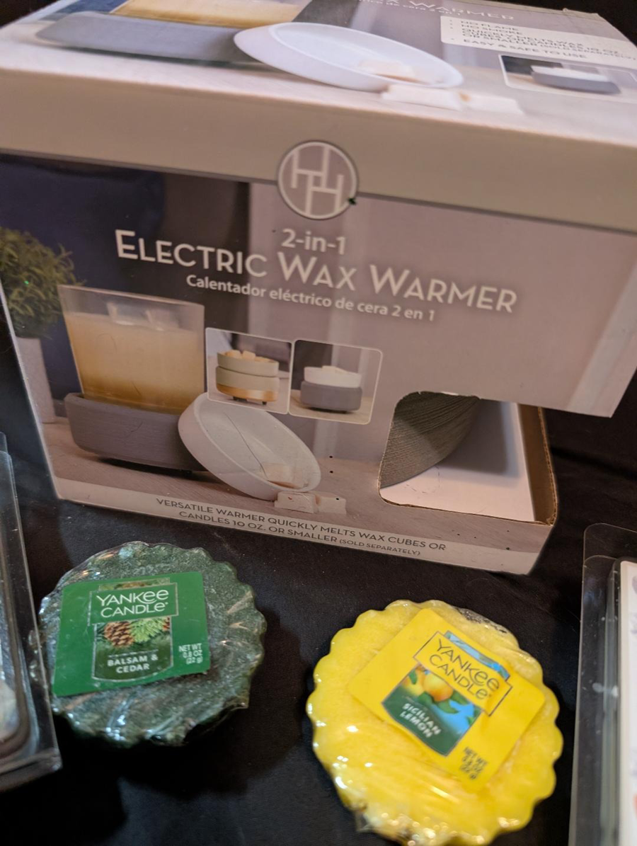 Also includes Yankee Candle Balsam Cedar, Sicilian Lemon, HH Vanilla Salted Caramel, and White Almond Scented Wax Melts! PRODUCT FEATURES: Candle warming and wax warming WHAT'S INCLUDED What's included: Warmer and warming dish PRODUCT DETAILS 6.3" x 6.4" x 5.3" Candle capacity: 20-oz. Cord length: 3-ft. Ceramic Spot clean Imported Manufacturer's 1-year limited warranty.