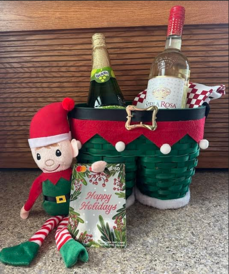 Get ready to spread holiday cheer with this delightful Elf Basket! Perfect for festive gatherings, this charming basket features a bottle of sparkling white grape juice that will add a festive touch to your celebrations. Alongside it, enjoy the sweet and bubbly Stella Rosa Moscato, a wonderful addition for those who appreciate a touch of luxury. The decorative kitchen towel adds a cozy, seasonal flair, making it an ideal gift for your loved ones. To top it all off, you'll find a plush elf that brings a whimsical touch to your holiday decor. As a bonus, this basket includes a $50 MasterCard gift card, giving you the freedom to treat yourself or someone special. Don't miss out on this enchanting Christmas gift that captures the spirit of the season!
