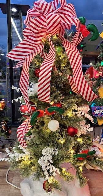 Beautiful 4ft tree covered in red, white and green with the Elf creating magic. This cute little tree comes with the following: $50 Soul on Main Gift Card $50 Copper River Gift Card $25 Raising Canes Gift Card $25 Arby's Gift Card $25 Firehouse Sub Gift Card $25 Jimmy Johns Gift Card