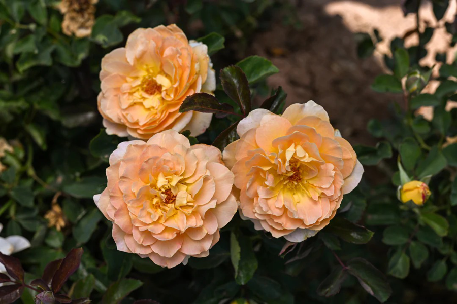 Shrub The Ember Room rose glows with layered petals in warm amber and apricot tones, deepening to fiery gold at its heart. Its radiant blooms and strong, elegant form bring a touch of sunset brilliance to any garden or floral display.
