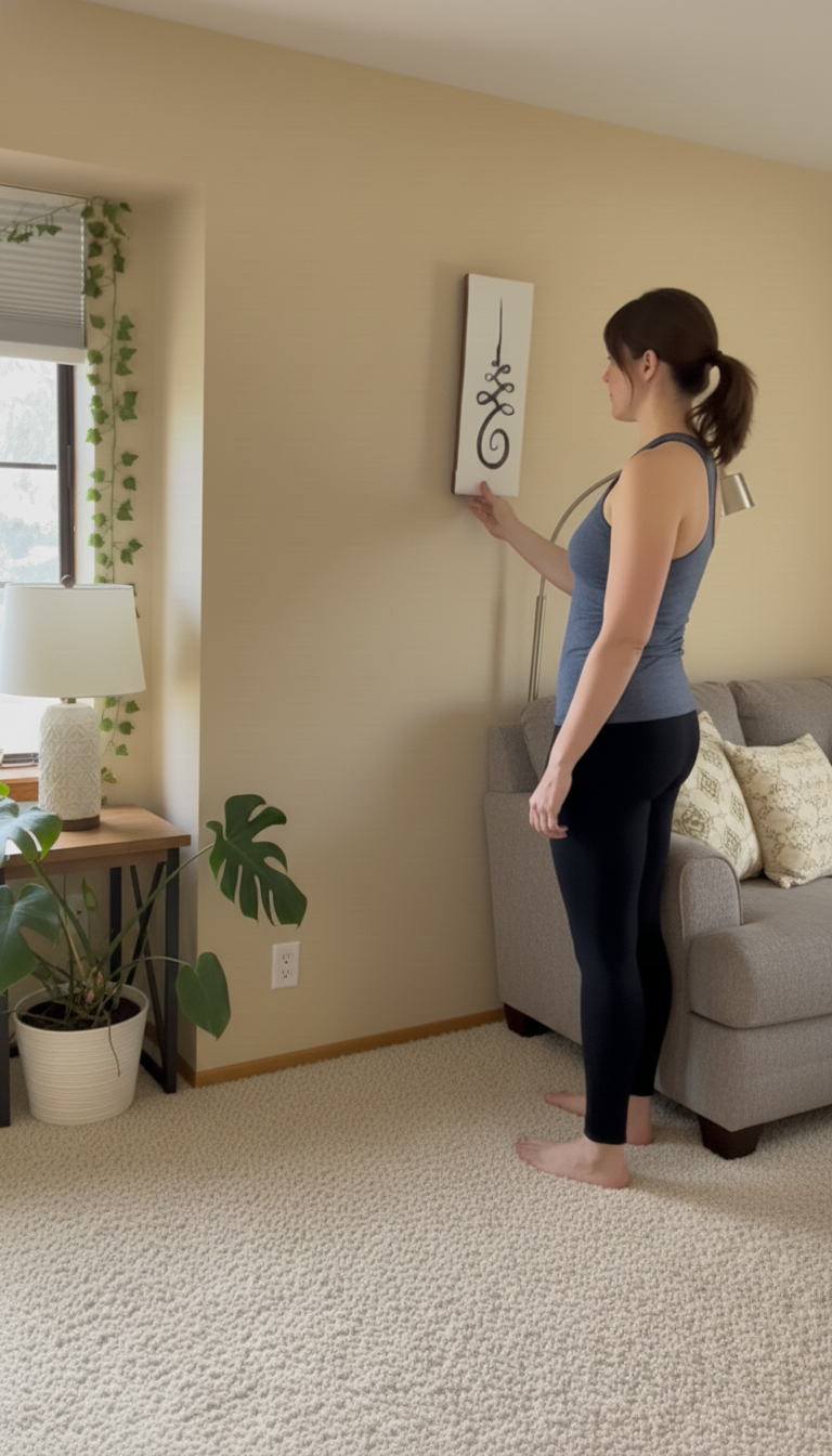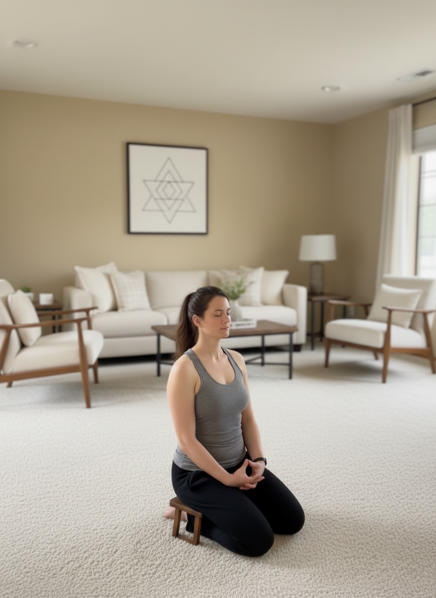 Art on your wall. Calm on demand This piece lives as simple, modern wall art until you are ready to sit. Lift it off the wall, set it down, and it becomes a stable kneeling style meditation bench that supports an open, upright posture and easy breathing. Each bench is made in small batches in Bend, Oregon. The wood is custom coffee stained and finished by hand. The seat pad is made with natural fibers and hand stamped ink block art, so every bench has its own one of a kind character. It hangs like decor and lifts off the wall when it is time to practice, which keeps your space calm and uncluttered. Perfect for yoga lovers, meditators, and anyone who appreciates functional art and a quiet moment in their day. ErgoTree makes 2 different sizes and several different pad designs. We have the taller option with the swirl design, however owner Kyle Taylor has generously offered to swap out your size or design should you like a different style better. Check out all options at www.ergotree.co