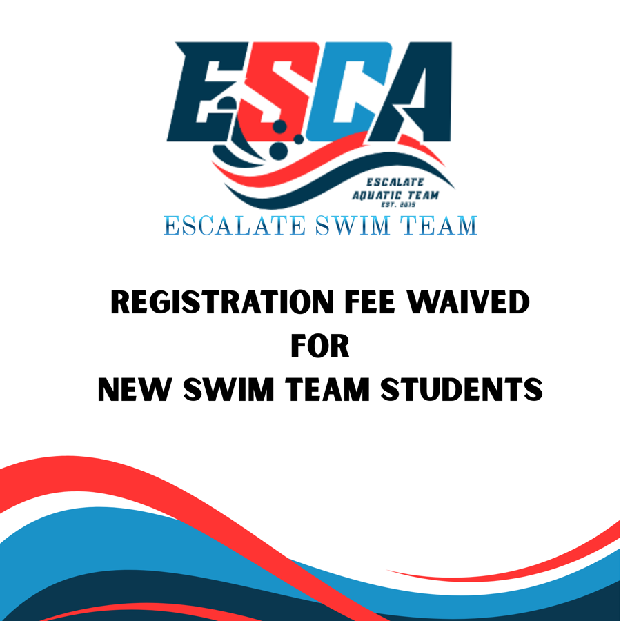 Registration waived for new swim team student registration. Applies to registration only. Escalate swim team is a year-round swim team that practices at Greatwood Pool 2 and at the Fort Bend ISD Training Pool.
