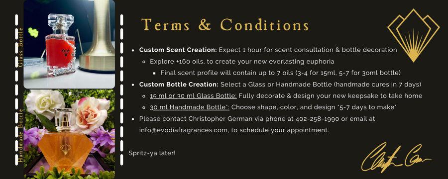 Share a truly unique experience! This package includes two gift certificates for custom fragrance creation sessions at Evodia Fragrances. You and a friend will design your own signature scents and personalize the bottles they come in. Perfect for a fun outing or a special gift!