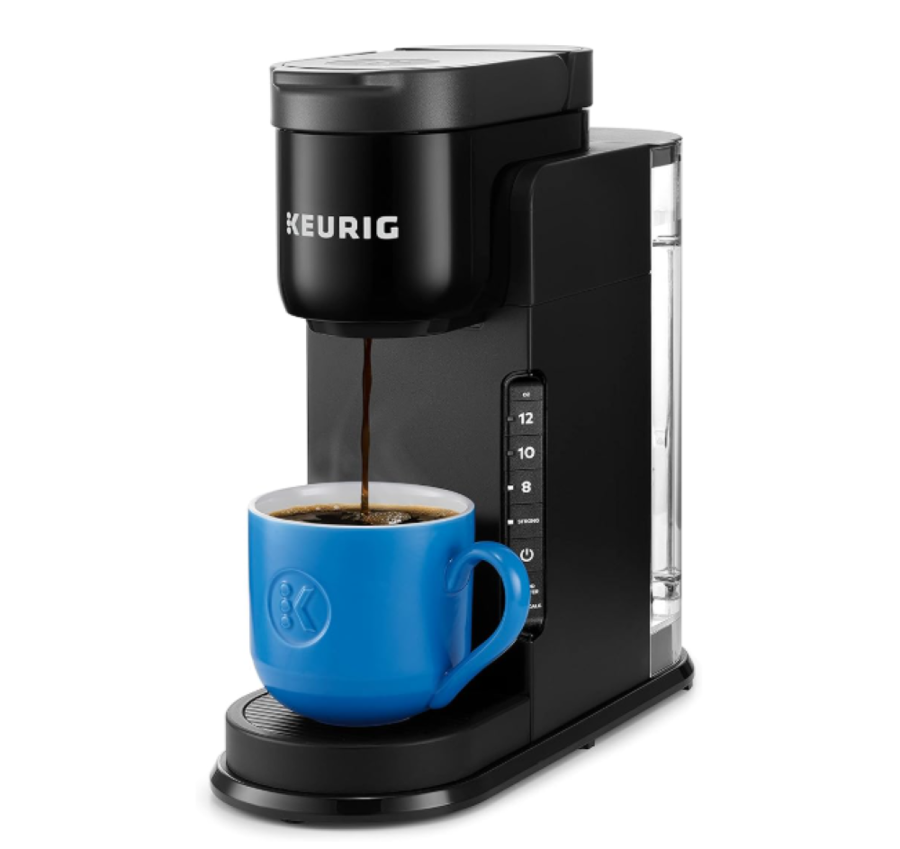 Experience Keurig® quality with the Keurig® K-Express™ Single Serve Coffee Maker. This single serve coffee maker allows you to brew your favourite beverages quickly and easily. The STRONG button lets you enjoy a bolder coffee taste. Compatible with hundreds of K-Cup pods, including tea and hot cocoa, it even works with the My K-Cup Reusable Coffee Filter for your own ground coffee. Its sleek design makes a statement in any kitchen. Features: Slim, space-saving profile 1.24 L (42 oz) removable reservoir allows for up to four cups before needing a refill Brews three cup sizes: 8 oz (237 mL), 10 oz (296 mL), and 12 oz (355 mL) Immediately brew a second cup without needing to wait for it to reheat Accommodates travel mugs up to 7" (18.4 cm) tall Auto Off automatically turns your coffee maker off 5 minutes after the last brew for energy savings Maintenance Alert reminds you to descale after every 250 brews Colour: Black