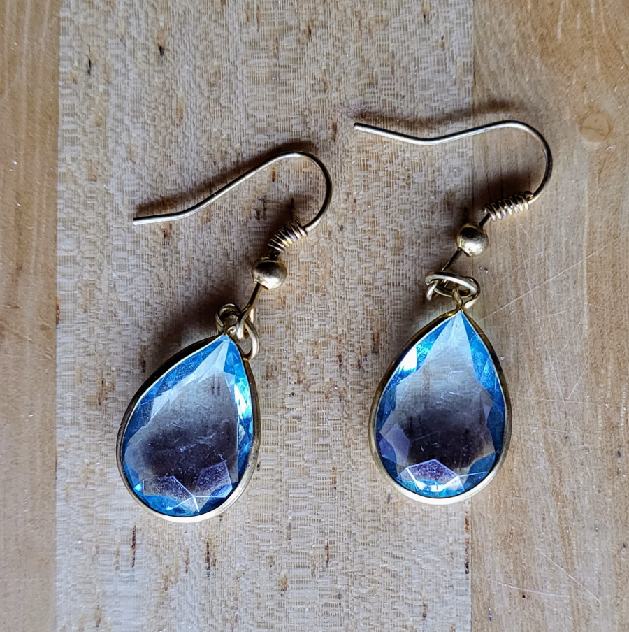 These earrings have an aqua tint around their edges, and the faceted style captures light beautifully! Each measures about 3/4" x 1/2"