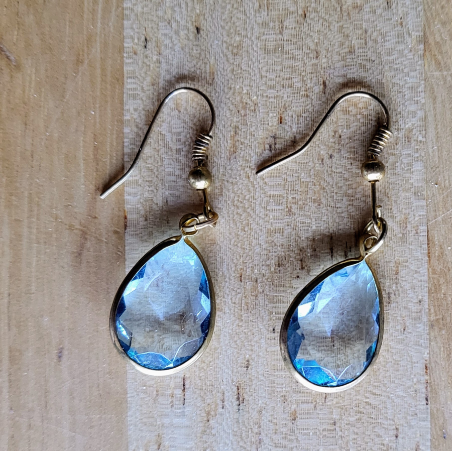 Faceted aqua and gold tone earrings