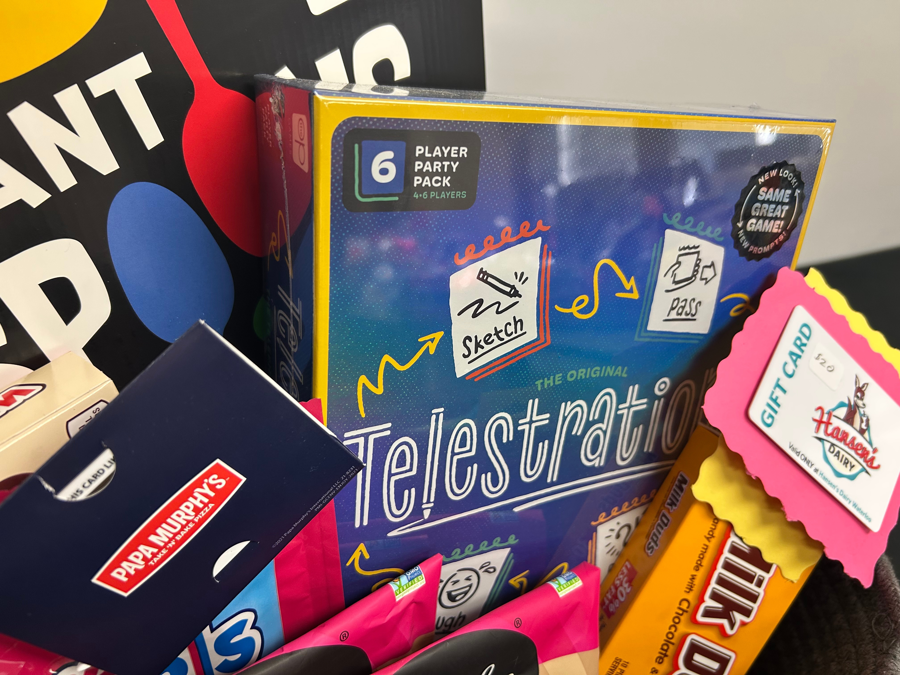 Bring the family together for a night of laughter, fun, and tasty treats with this ultimate game night package: • Telestrations, Giant Spoons, UNO, Taco Cat Goat Cheese Pizza – a variety of games for all ages • Assorted candies – sweeten the evening • $25 Papa Murphy’s Gift Card – pizza made easy • $20 Hansen’s Dairy Gift Card – treat the family to delicious ice cream Everything you need for an unforgettable night in with the whole family!
