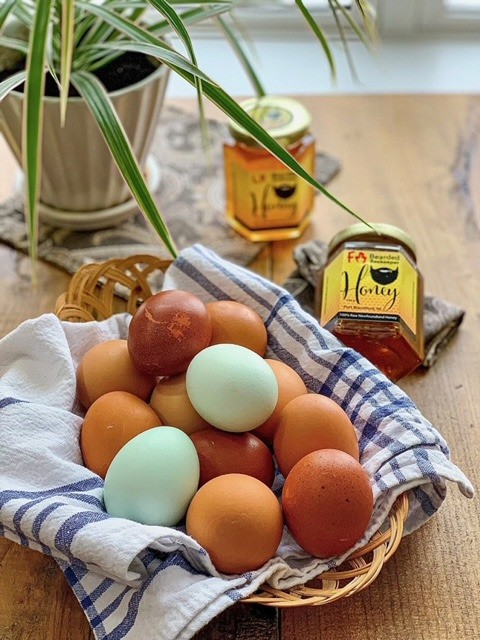 A dozen pasture raised eggs & a 500g pure unpasteurized wildflower Newfoundland Honey Donated by The Bearded Beekeeper