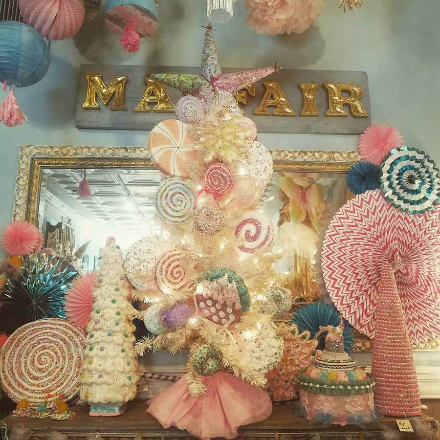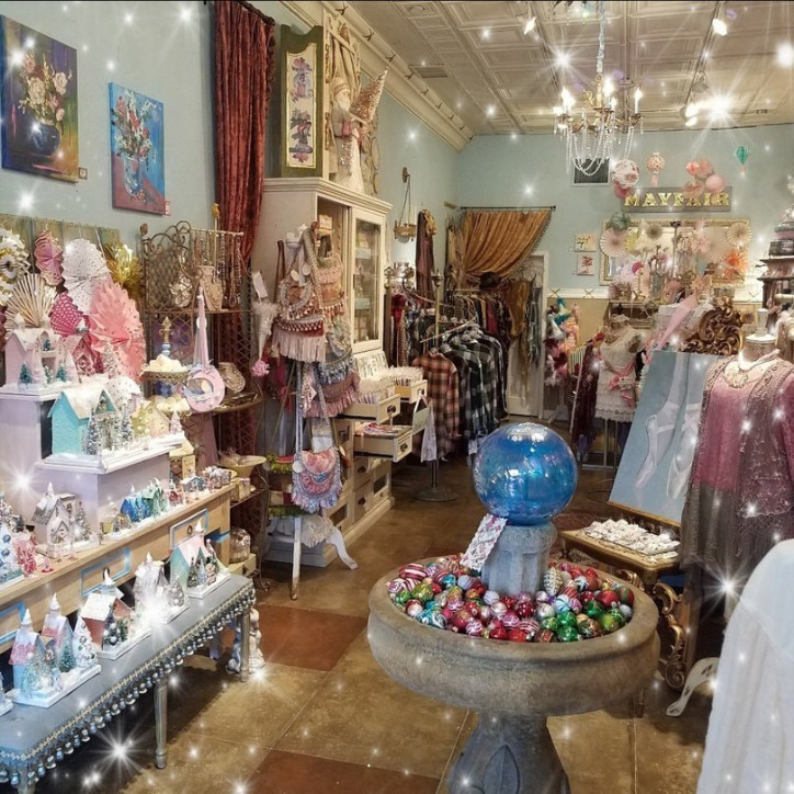 Beautiful Sage Green Felt Fancy Hat, banded with a feather and stone embellishment. One size fits all. Mayfair is an unexpected assortment of finds from fabrics to hand-made items. Owner Rebecca Avant’s imagination is the inspiration for all kinds of decorative and accessory shopping. The store is filled with whimsical and one-of-a-kind treats.