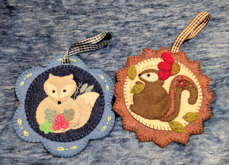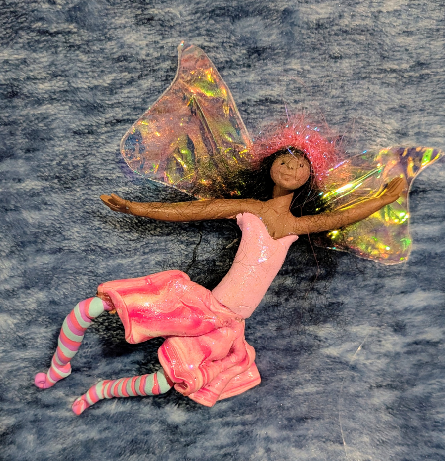 Auction Item: Small Felted Fox and Squirrel Round Hanging Art and Whimsical Black Fairy Mobile in Pink (about 4 inches long) Donated by: Toby Bobbitt