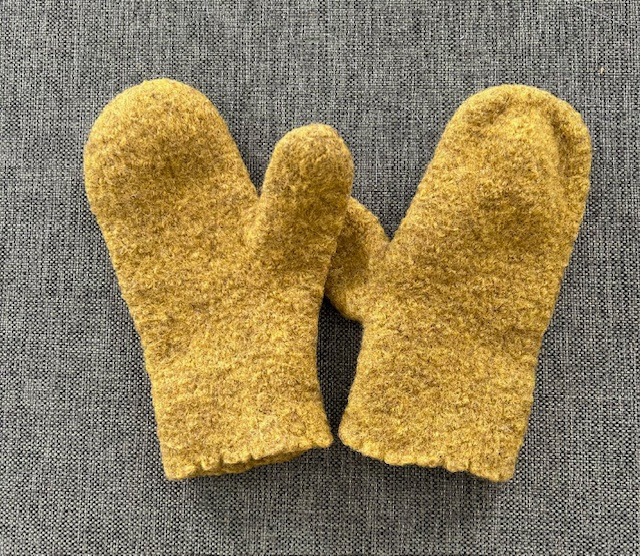 One pair of beautifully felted wool mittens hand-made in the color of your choosing. Will fit to size. Example shown.