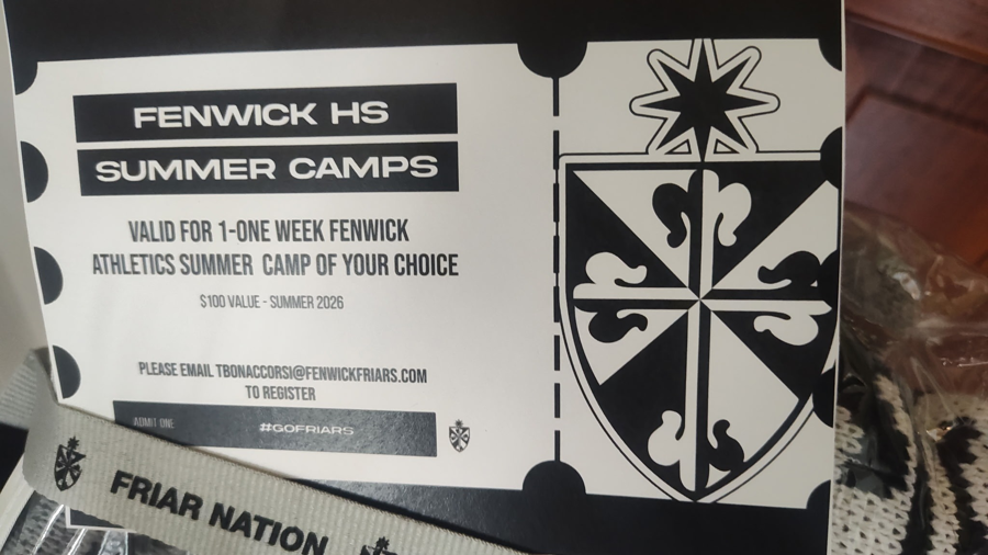 Show your Friar spirit with this incredible Fenwick High School Basket, overflowing with premium gear and an unforgettable summer camp opportunity! Perfect for current families, future Friars, or any fan of the Black & White. This bundle includes: Fenwick T-shirt Fenwick sweatshirt Fenwick beanie Cozy flannel pants Blanket Aluminum water bottle Friars mug Lanyard Magnet Magnet notepad Notepad Tin "ice" bucket Certificate for one week of a Fenwick Athletic Summer Camp (Summer 2026, camp of your choice!) A perfect mix of spiritwear, essentials, and a memorable camp experience—this Friar Pride Pack has it all. Bid now to bring home the Black & White!