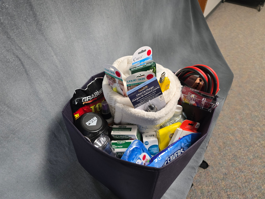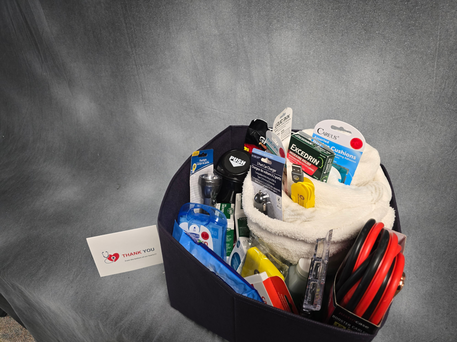 Do you have your own car? Does your car have an emergency kit? If not then this basket is perfect for you or a loved one. We have emergency supplies that is useful for any roadside assistance. Included in basket: 1 Blanket Jumper Cables Hand and Feet Warmers Hand Held Ice Scrapper First Aid Kit Extra Badges Liquid Bandage Blister Cushions Excedrin Ibuprofen Gauze Pads 50% Isopropyl Alcohol Flashlight Batteries Mini Trashcan Multi-Purpose Cleaner Life Saver Gummies Car Port Charger Charging Cables Thank you to Coldwater Fire Department for their donation! Basket Artists are: Allison Castaneda/Franky Ramos