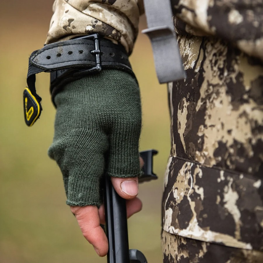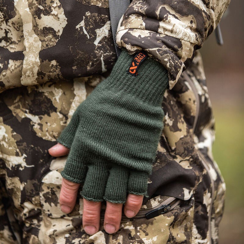 Simple, seamless, fingerless shooting gloves made from Merino Wool for all of your pursuits. Thanks to Merino, these fingerless hunting gloves will keep your hands warm even when soaking wet and offer fantastic insulation where your hands need it most.