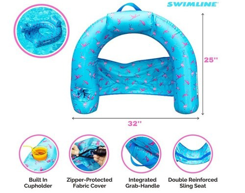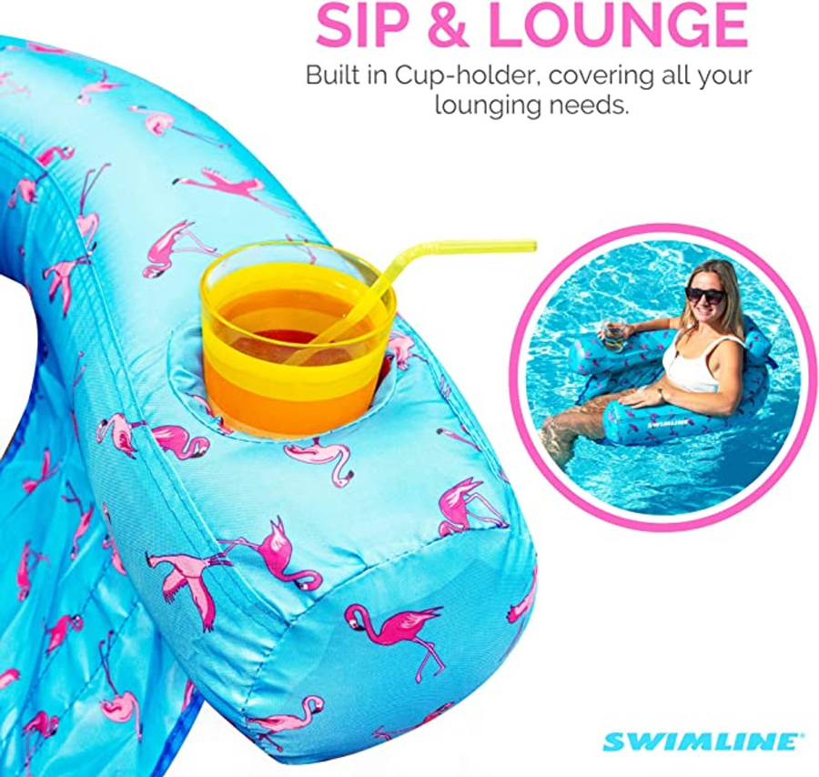 Swimline flamingo fabric covered u-seat. This floating chair is ideal for your pool or cottage.