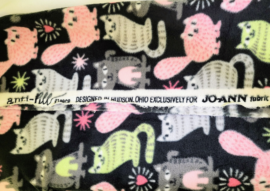 Make your own kitty blanket or pads from this adorable, anti-pill fleece edged fabric. Measures about 48" x 48".
