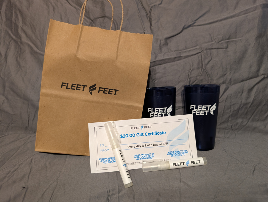 Introducing the Fleet Feet basket, a perfect package for any running enthusiast! This exclusive auction item includes a $20 gift certificate to Fleet Feet, allowing the winner to shop for the latest running gear and apparel. To keep you refreshed and hydrated, the basket also features two stylish Fleet Feet cups, perfect for enjoying your favorite beverages on the go. Additionally, we've included a Fleet Feet travel hand sanitizer to ensure you stay germ-free while you hit the trails. Don't miss out on this fantastic opportunity to elevate your running experience with the Fleet Feet basket!
