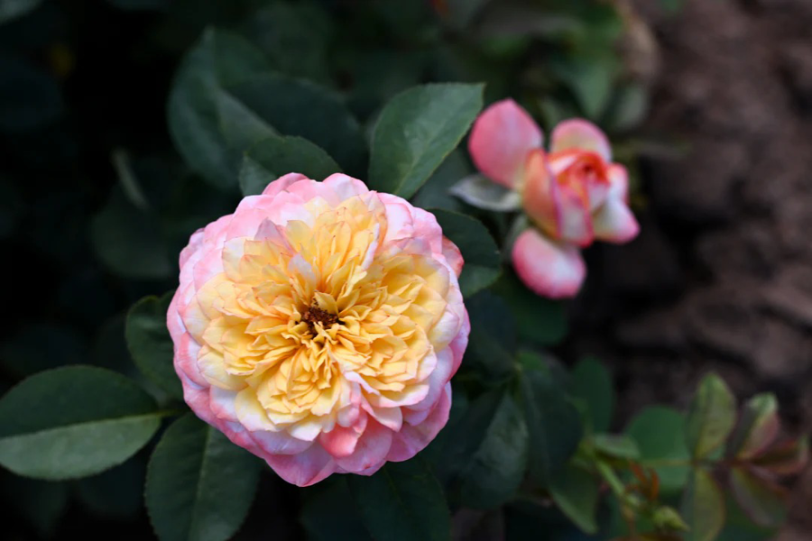 Floribunda Fleur de Lumière radiates warmth and joy with its captivating blend of golden yellow and soft blush pink petals. The blooms open in generous layers, their luminous centers glowing like captured sunlight. As they mature, delicate tones of apricot and cream emerge, creating a harmonious gradient that feels both tender and radiant.