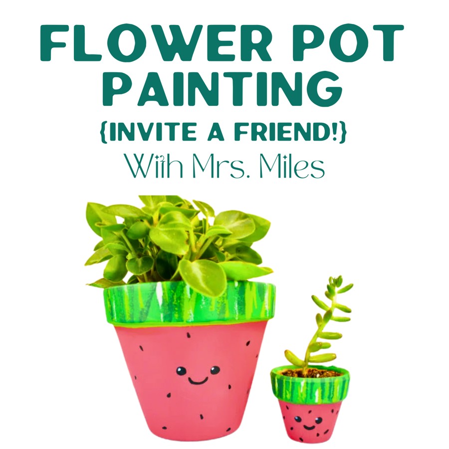 The winning bidder will join Mrs. Miles to create some beautiful painted flower pots. The winner may also bring a friend! This activity will take place after school on April 15, 2025.