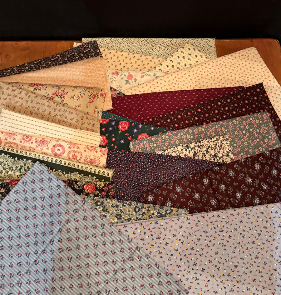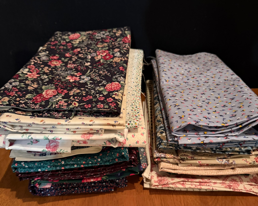 Flowers 4 (24 different fabrics) Multiple pieces of fabric. No guarantees for sizes (all sizes are estimates)