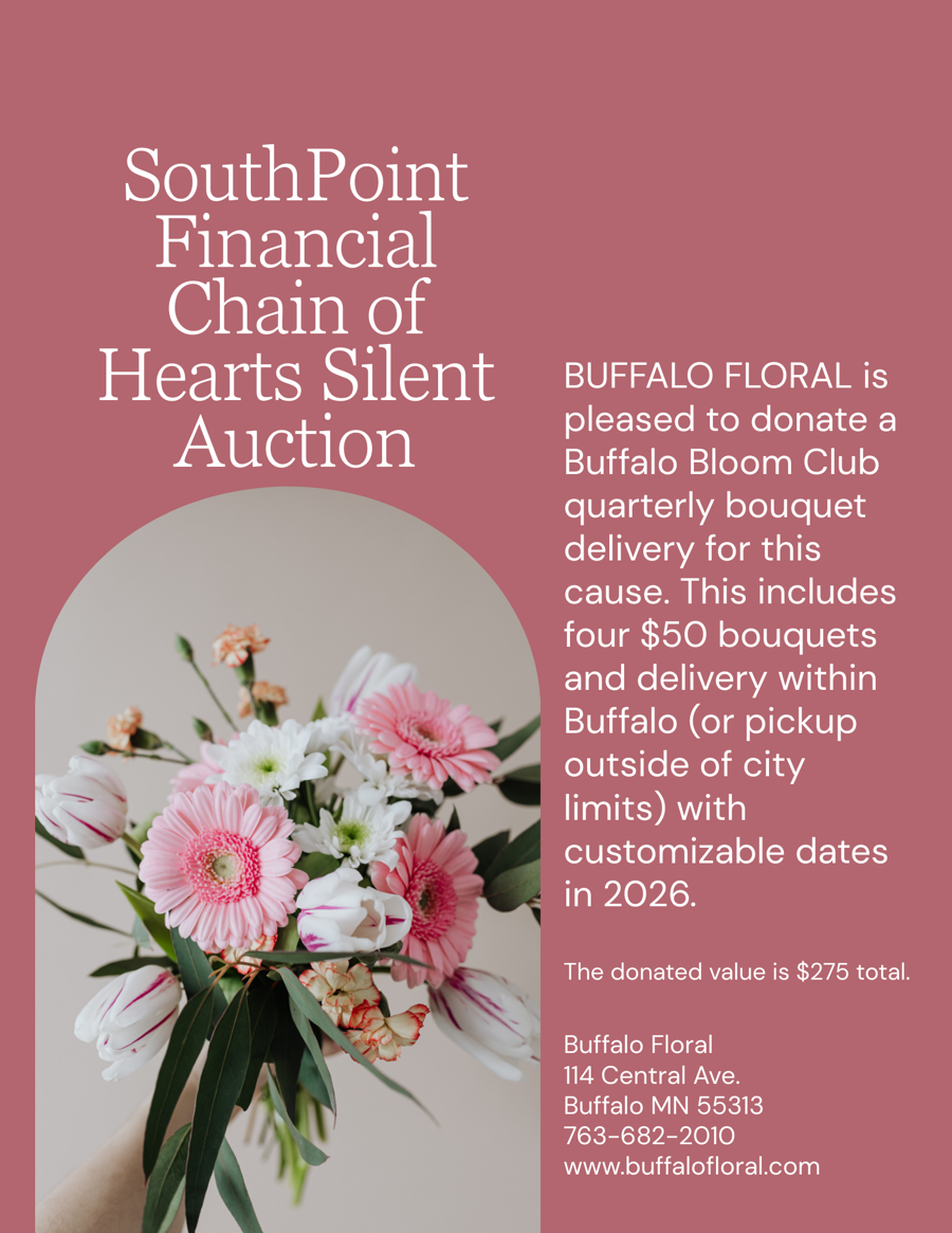 Enjoy beautiful, fresh flowers all year long with this Quarterly Bouquet Delivery from Buffalo Floral. This package includes four $50 bouquets with customizable delivery dates throughout 2026. Delivery is included within Buffalo, or bouquets may be picked up outside city limits. A perfect gift for yourself or someone special!