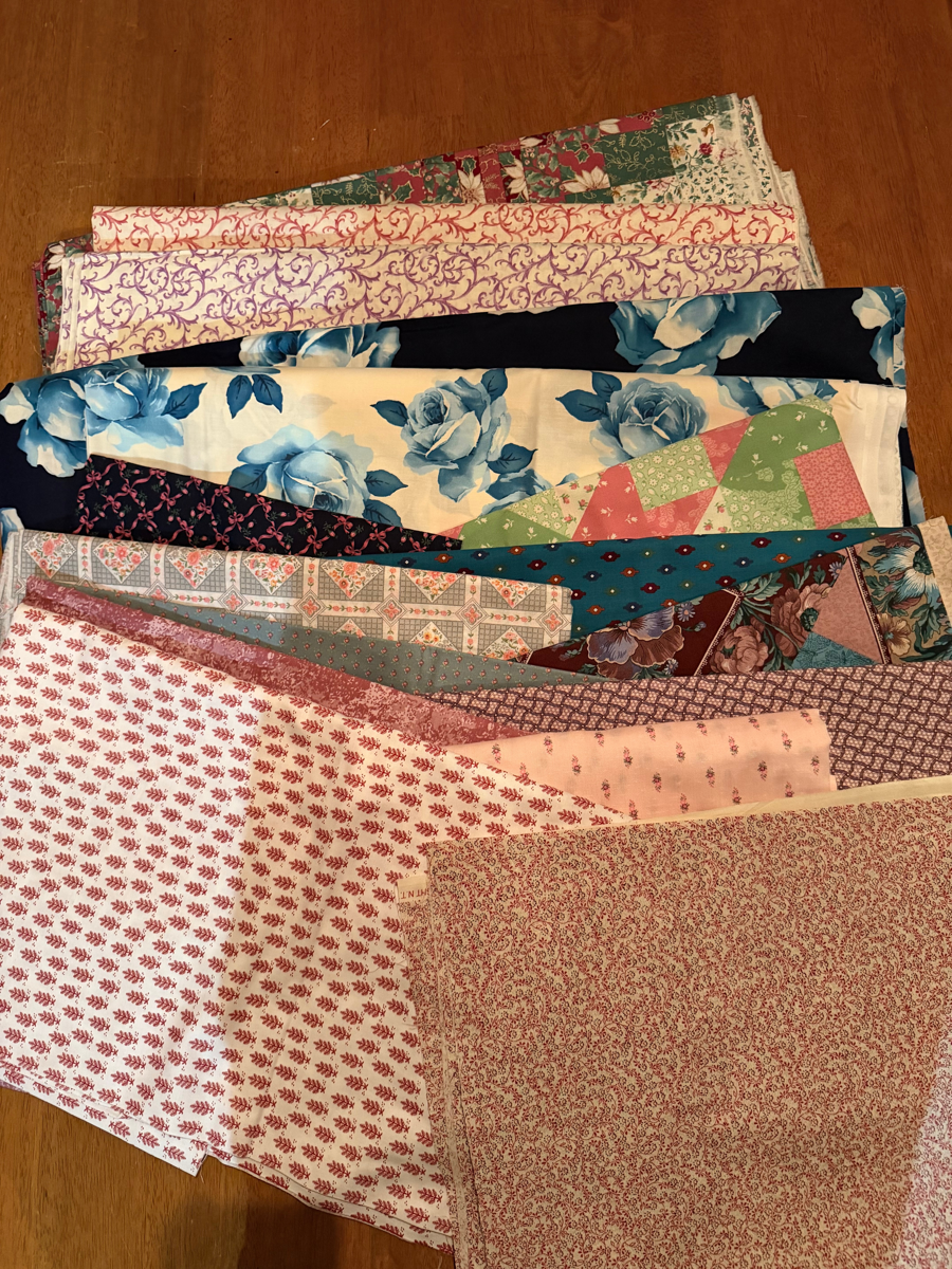 Flowers/Mixture (16 different fabrics including 3 and 6 yard pieces) Multiple pieces of fabric. No guarantees for sizes (all sizes are estimates)