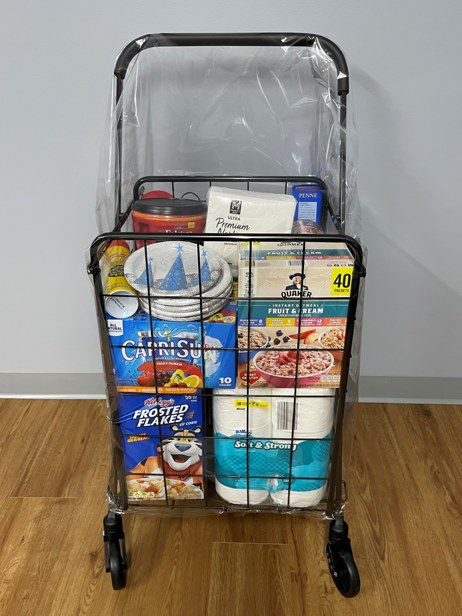 Up for auction is a fantastic Food Cart filled with a variety of non-perishable food items and essential household goods. This grocery cart is brimming with carefully selected non-perishables, perfect for stocking your pantry or providing for emergency situations. Alongside the food, you'll find essential household items that can help you maintain a well-equipped home. Whether you're looking to prepare meals, support your family, or simply ensure you have the basics covered, this grocery cart has everything you need. Don’t miss out on this opportunity to grab a great deal on these non-perishable food and household items!
