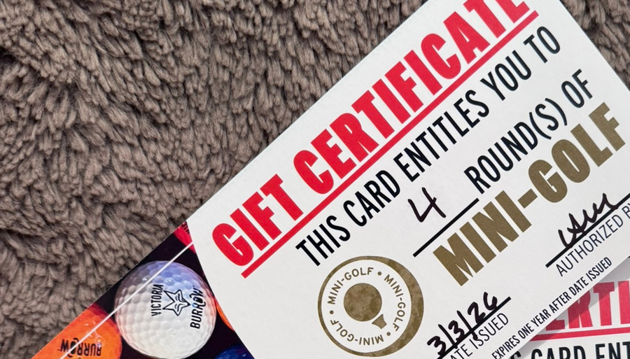 Voucher is good for 4 rounds of Mini Golf at Victoria Burrow (Expires 3/3/2027)
