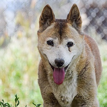 Paw and nose print created by late New Guinea singing dog Foxy. New Guinea Singing Dogs are known for their unique vocalization, and they are the rarest canine species on the planet! These ancient canines were believed to be extinct in the wild until a few years ago when a small population was confirmed to be living on Papua New Guinea. Foxy and the other singers involved in her rescue never lived in the wild, originating instead from a flea market, where two pairs of singers were purchased and eventually bred so rampantly that their population grew to over 80 animals! Thankfully, they were all rescued by the collaborative efforts of numerous organizations who came together to save them. Foxy was always the most shy member of our singer family, preferring the company of her companion Bowie to that of humans.
