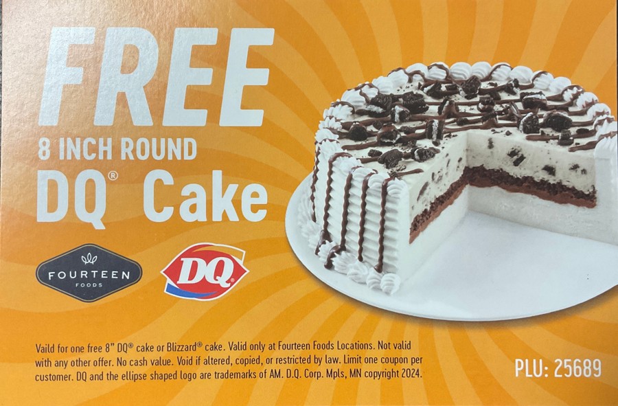 Indulge in a deliciously sweet treat with our Free 8" DQ Cake! Perfect for any celebration or just to satisfy your cravings, this cake is crafted from the finest ingredients and is a delightful addition to your dessert table. Whether you prefer the classic DQ Cake or the delightful Blizzard Cake, this 8-inch masterpiece is sure to impress your guests and make any occasion extra special. Don't miss out on the chance to enjoy this delectable dessert, available for free!