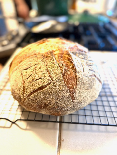 Two fresh white/whole wheat homemade sourdough loaves to be picked up at a later date. To be coordinated with the donor.