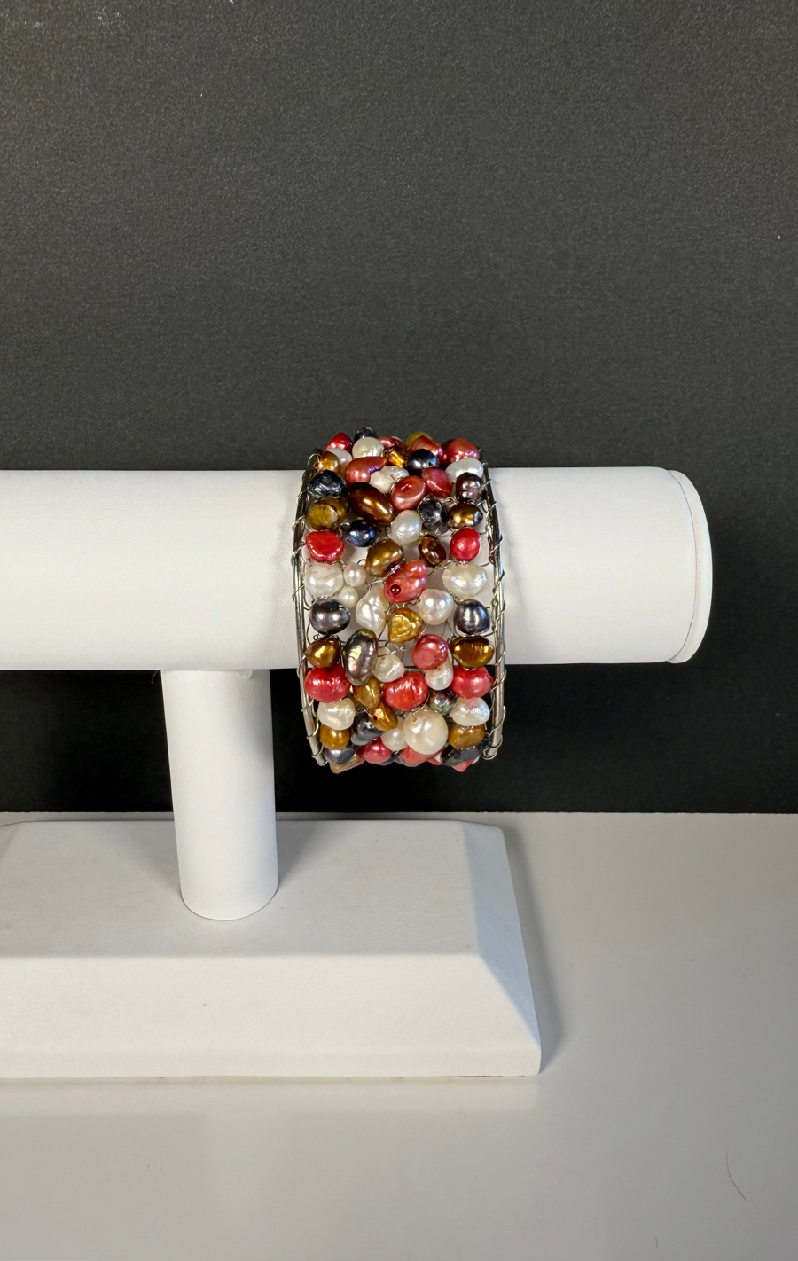 Add a bit of color and style to any outfit with this multicolored freshwater pearl cuff. 7 inches