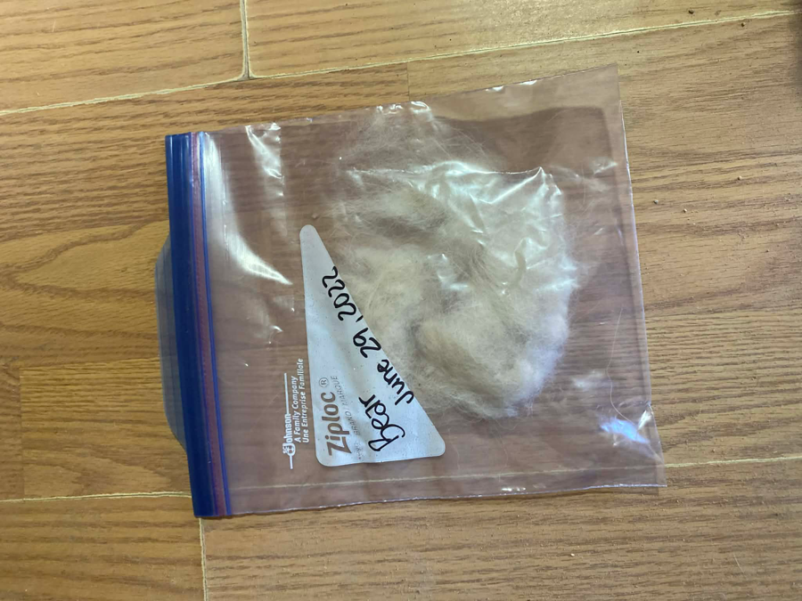 Enjoy the luxurious feel of naturally shed wolfdog fur from late rescue Bear. Bear was a mid-content wolfdog that was born at a fur farm and petting zoo that used their animals to turn a profit. Rescued with three other males, they were all extremely social and comfortable around people, but Bear trusted people only after they proved themselves to be patient and respectful. It was a rare gift to be loved by him. His fur makes the perfect craft for Christmas: - Take some of the fur from the bag and a clear ornament - Stuff the fur into the ornament and voila! You've got the perfect decoration to add to your Christmas tree!