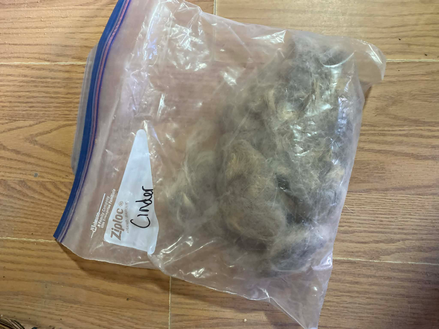 Enjoy the luxurious feel of naturally shed wolfdog fur from rescue Cinder! Cinder is a mid-content wolfdog that was originally found wandering in the wild and believed to be a pure gray wolf! As a result, he was captured and DNA tested--an event that would determine his fate. When the results showed there was around 20% dog in his DNA, Cinder found himself coming home to Wild Spirit. His fur makes the perfect craft for Christmas: - Take some of the fur from the bag and a clear ornament - Stuff the fur into the ornament and voila! You've got the perfect decoration to add to your Christmas tree!