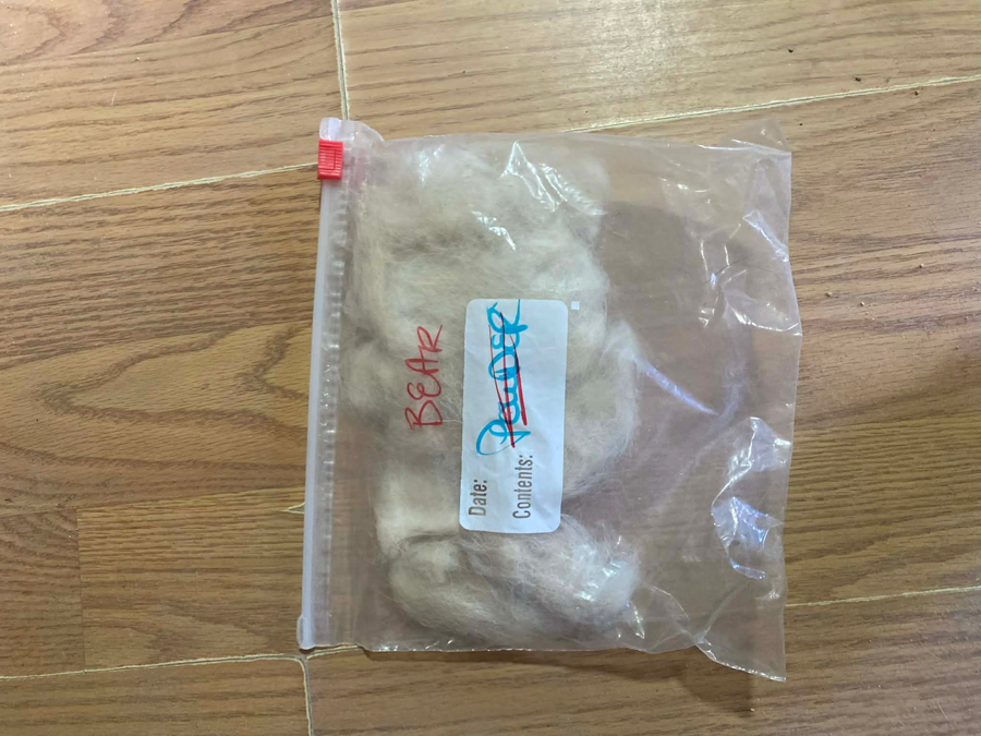 Enjoy the luxurious feel of naturally shed wolfdog fur from late rescue Bear. Bear was a mid-content wolfdog that was born at a fur farm and petting zoo that used their animals to turn a profit. Rescued with three other males, they were all extremely social and comfortable around people, but Bear trusted people only after they proved themselves to be patient and respectful. It was a rare gift to be loved by him. His fur makes the perfect craft for Christmas: - Take some of the fur from the bag and a clear ornament - Stuff the fur into the ornament and voila! You've got the perfect decoration to add to your Christmas tree!